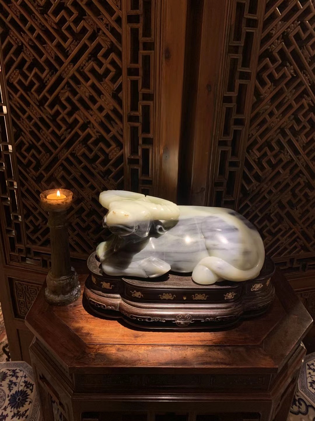 鎮店之寶、清朝中期的白玉牛。