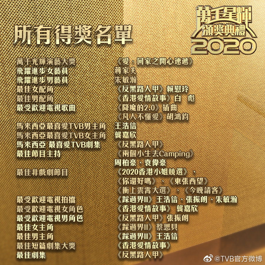 《反黑路人甲》則奪得了包括「最佳劇集」在內的六個獎項,成為獲獎數量最多的劇集。值得一提的是,《踩過界II》和《反黑路人甲》均由林志華監製,他成為本屆頒獎禮的最大贏家。