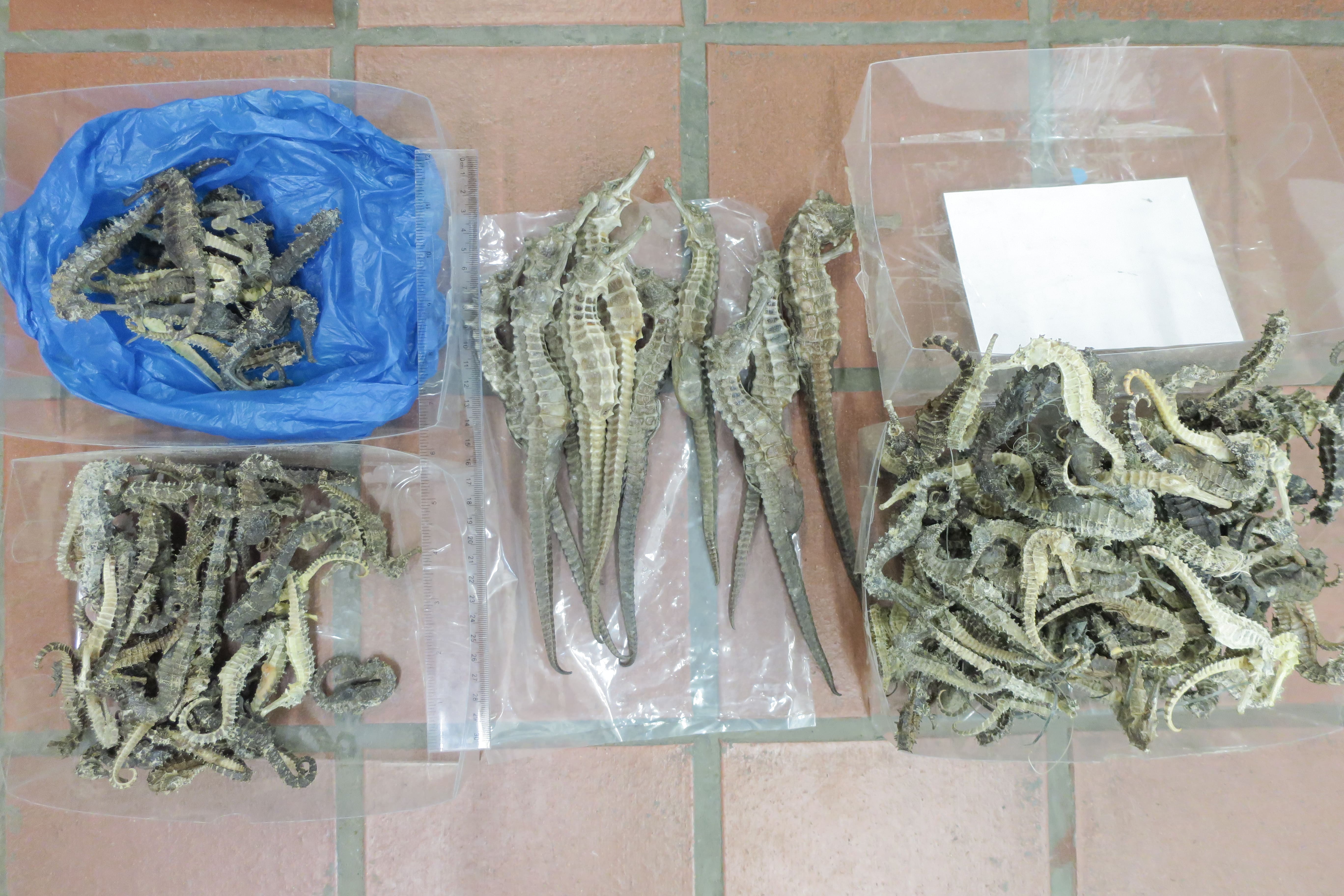 海關人員在該3名旅客的行李中發現的乾海馬。