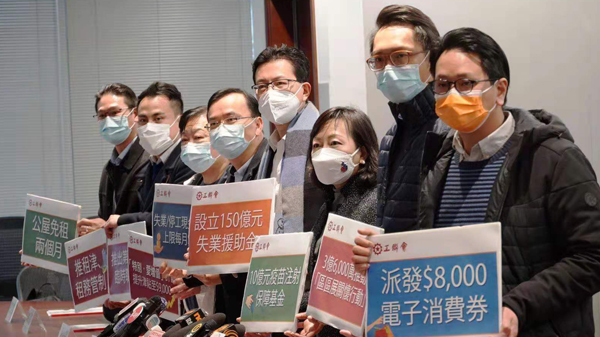 工聯會其他建議還包括向市民派發8000元電子消費券;開設不少於73000個臨時職位;增發兩個月綜援金、職津、長生津、生果金、傷殘津貼等。