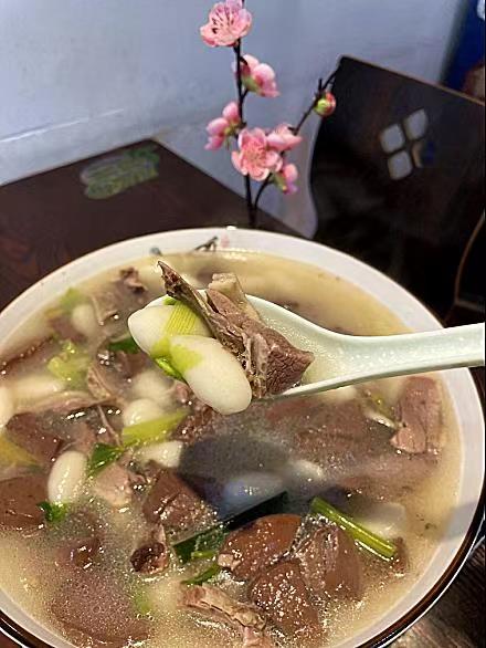 據悉,製作鵝湯糍需要的原料不多,只有糯米粉、鹹鵝和鵝血三種,但製作工藝相當考究,包括藏鵝、選鵝、煲鵝、醃鵝、煮湯、搓粉、揉面、捏團等8道工序,曆時三四個小時。「藏鵝這個步驟尤為關鍵,可以讓鵝肉吃起來更具口感。通常我們會把從市場採購回來的老鵝,通過喂養稻穀、蔬菜等來改變飲食習慣,讓鵝排出體內的飼料後不斷地長出結實的肉,從而在烹飪時能提升鵝肉的口感。」而鵝湯糍的小配菜也相當講究,記者見到,用於提鮮和去油膩的芹菜和蒜苗必須是香芹和紅頭蒜,因為這樣更香更壓腥。