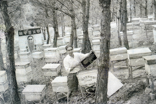 1947年寶生園創辦人梁遠湛在粉嶺蜂場留影。寶生園圖片