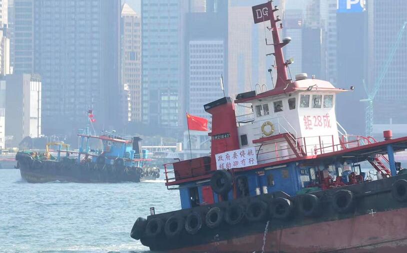 香港海面石油商會舉行加油船海上遊行,要求政府支援海上加油行業。記者崔俊良攝