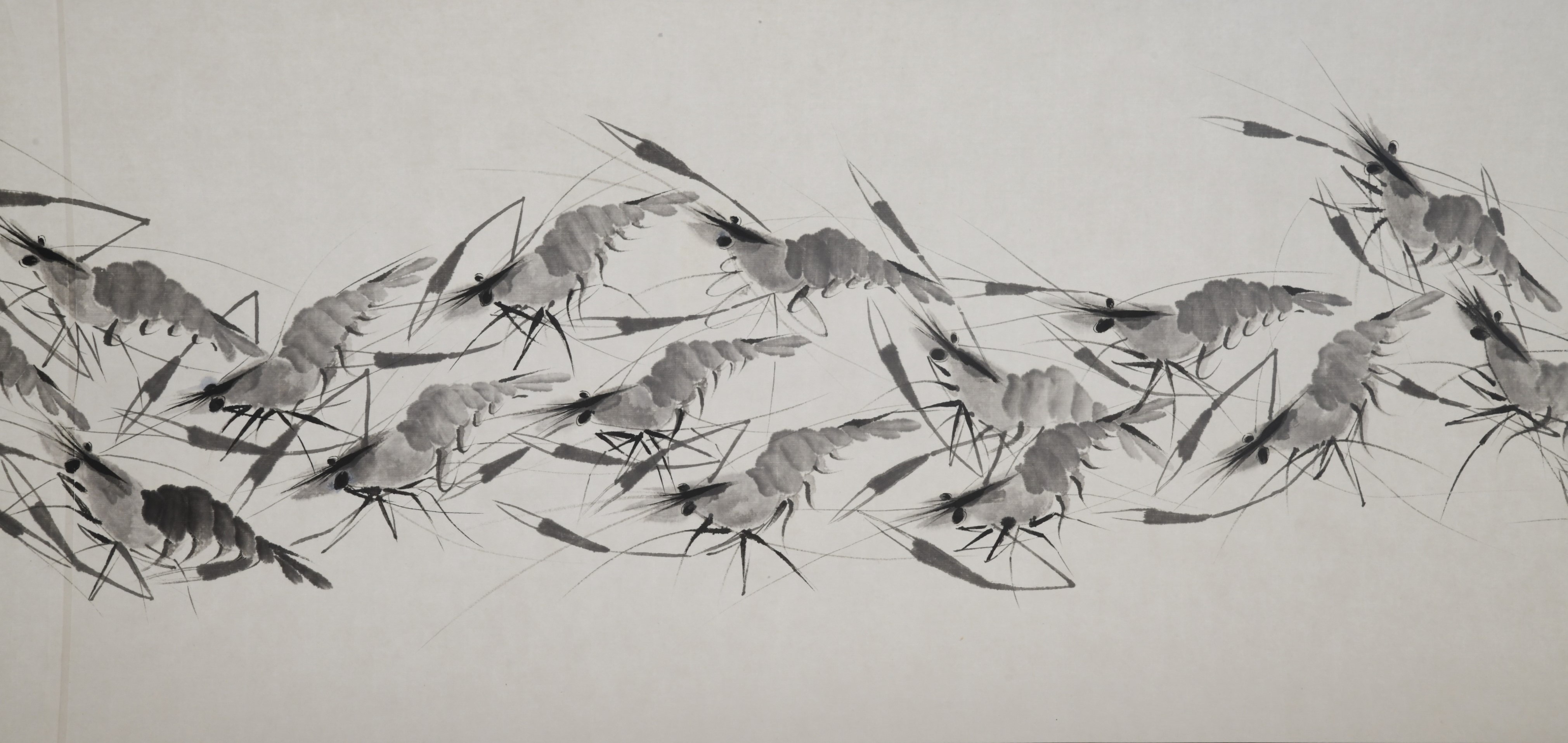 黎家駒巨幅畫作《百蝦共舞》局部。