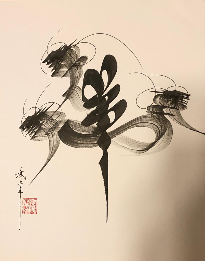 書法藝術種類繁多,有不同的書體,黎家駒早於上世紀到各地宣傳介紹傳統水墨文化之前,寫的為「飛白書」,這種書體在書寫時毛筆筆頭沒有完全出墨,因而會出現枯筆,字體會有拖絲或留白的現象,因讓人有飛動之感,故稱飛白。現時黎氏所寫的「飛白書」,卻有點不同,每個字均帶有龍頭、龍鬚,將書畫合一,他稱之為「龍鳳書法」:「我自小練習『飛白書』,但始終認為書畫不應該只學他人,要有自己的風格,所以巡迴書法表演前,我自創『龍鳳書法』,配上龍與鳳,更具皇氣,也給人矜貴感。」由「飛白書」演變成「龍鳳書法」,或許正是因為圖案具中國元素,才更得外國人喜心。「後來,我又覺得有龍、有鳳,兩者合拼太「江湖」氣,因此只保留龍在字中。」