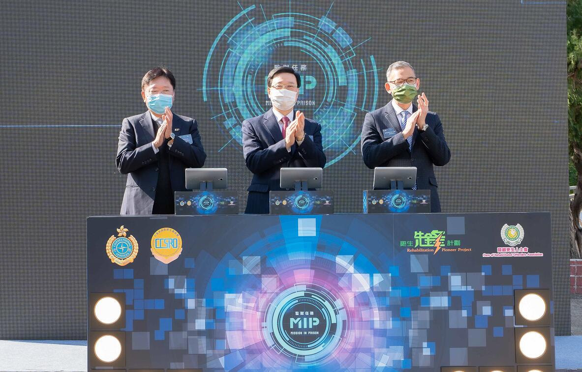 政府表示,保安局局長李家超與關顧更生人士會會長黃建強今日(15日)在赤柱馬坑監獄主持懲教署社區防罪教育活動「監獄任務」的開幕禮,一同見證活動順利開展。