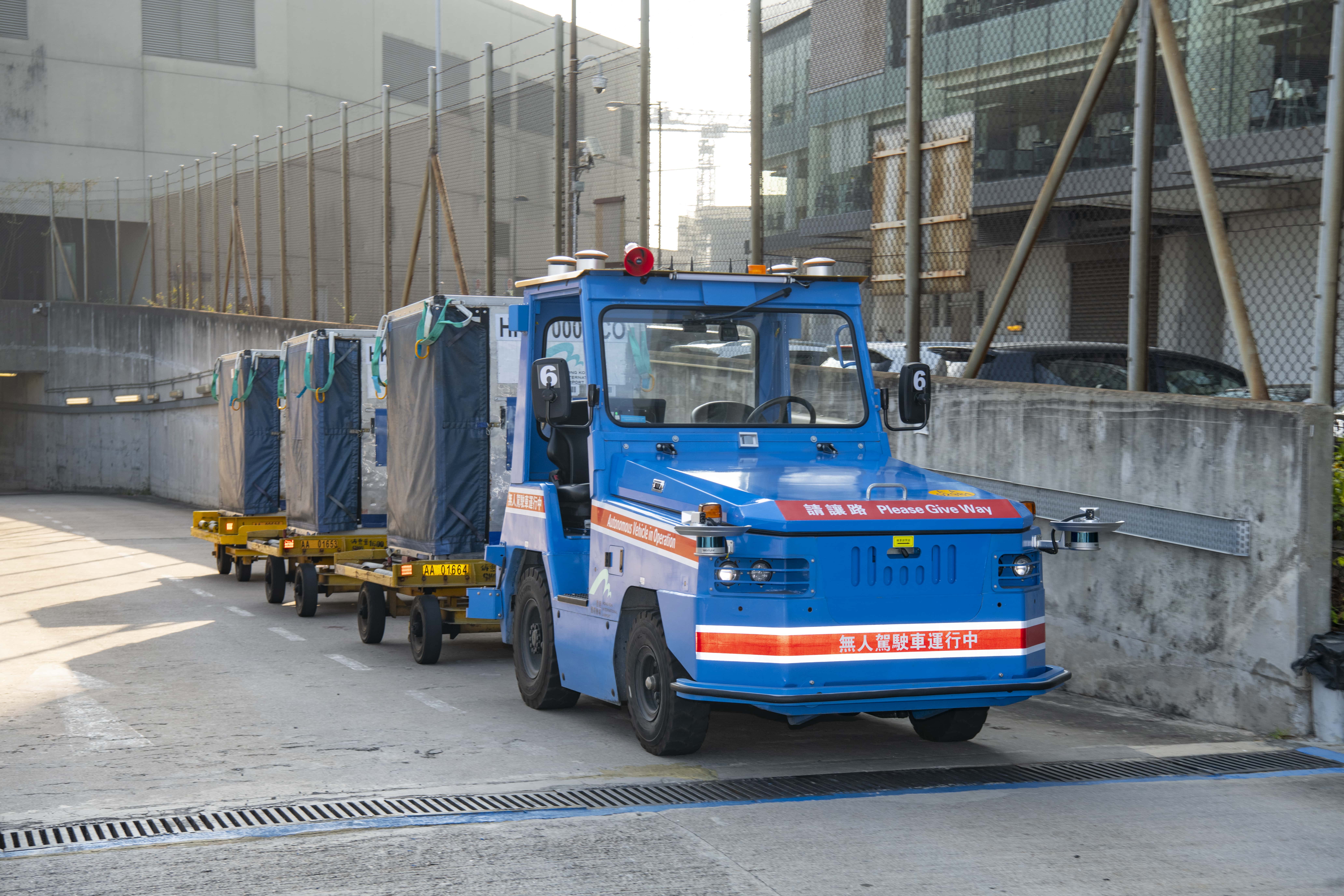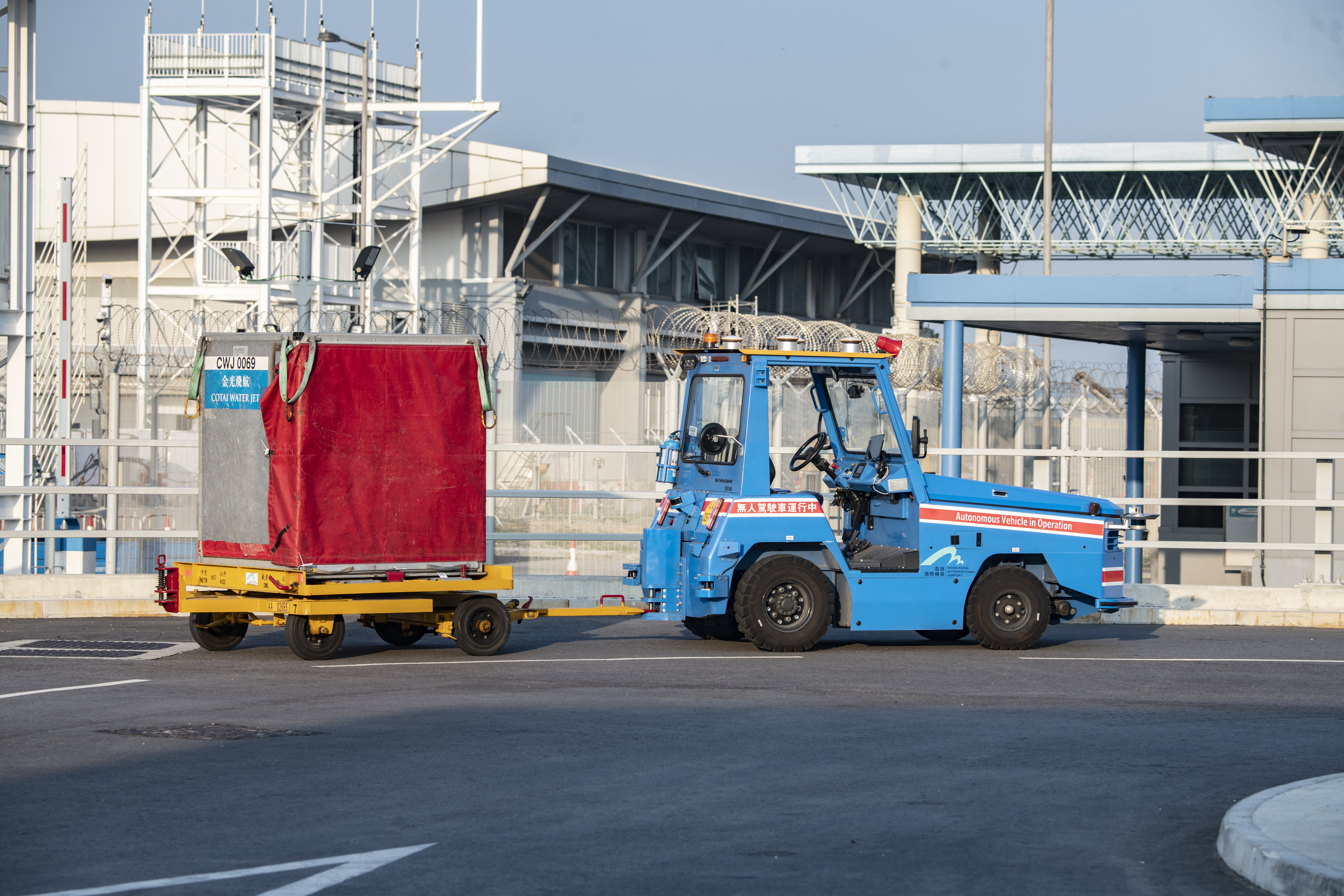香港機場管理局指,香港國際機場的無人駕駛拖車於2019年12月30日已正式投入服務,它是全球第一輛於機場實際環境操作的無人駕駛拖車;拖車在2020年10月也擴展服務範圍至穿梭機場海天客運碼頭及一號客運大樓行李處理大堂,為飛機轉搭快船或快船轉搭飛機的旅客運送行李。