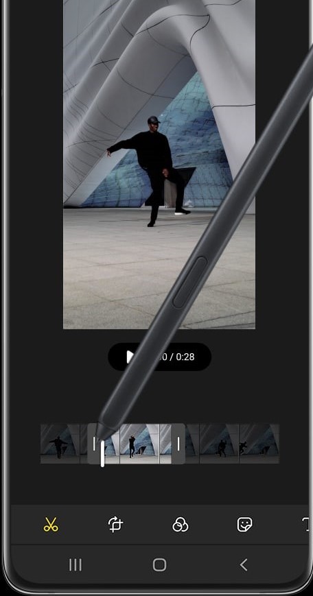 在進行影片剪輯工作時,使用S Pen較用手指調校更為精準。
