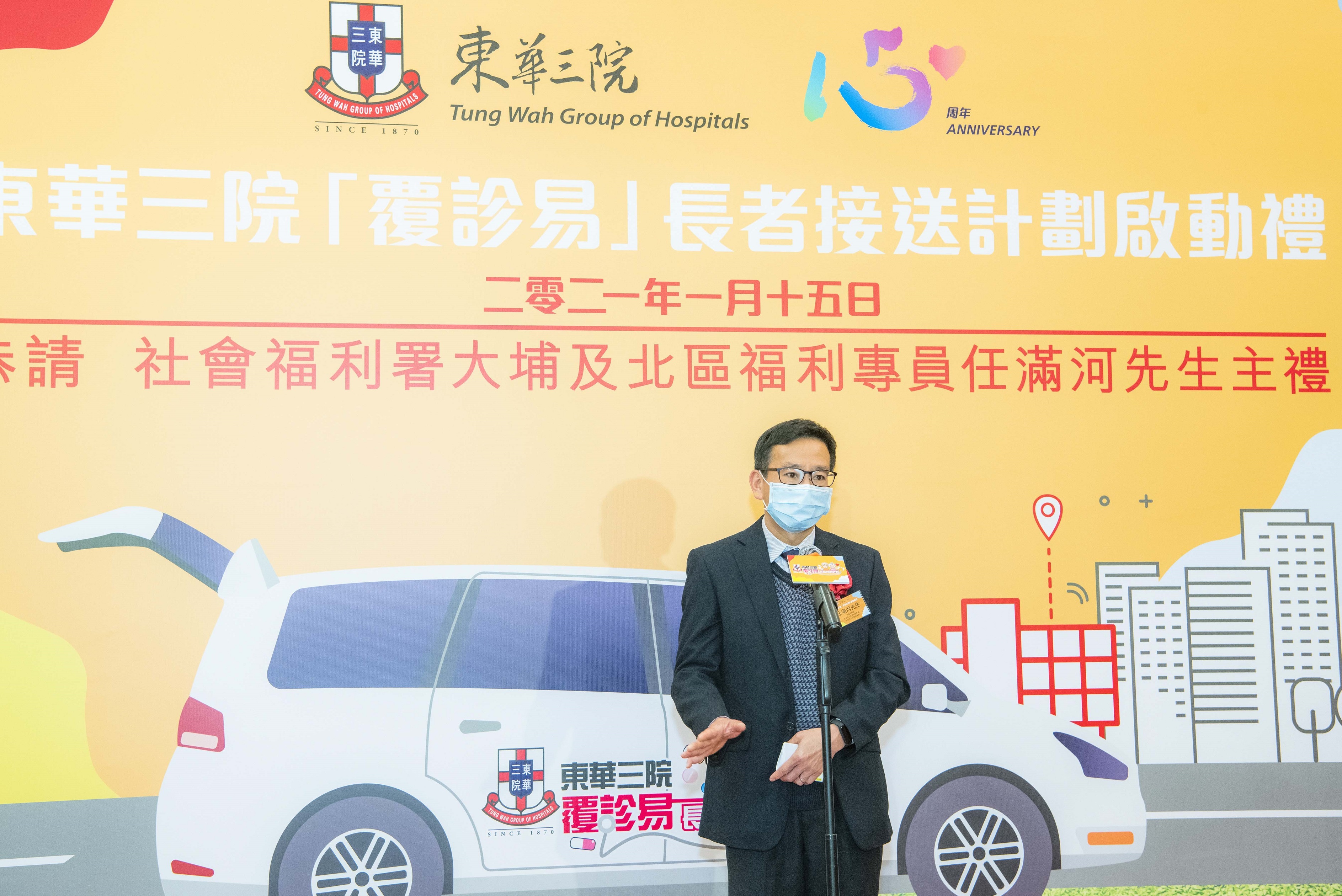 社會福利署大埔及北區福利專員任滿河在「覆診易」計劃的啟動禮上致辭。