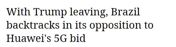 根據巴西19日媒體引述政府和行業消息來源,巴西政府將不會禁止中國華為公司參加今年6月的5G頻譜拍賣。此前2020年12月曾有消息指,華為將被排除在巴西5G網絡建設之外。