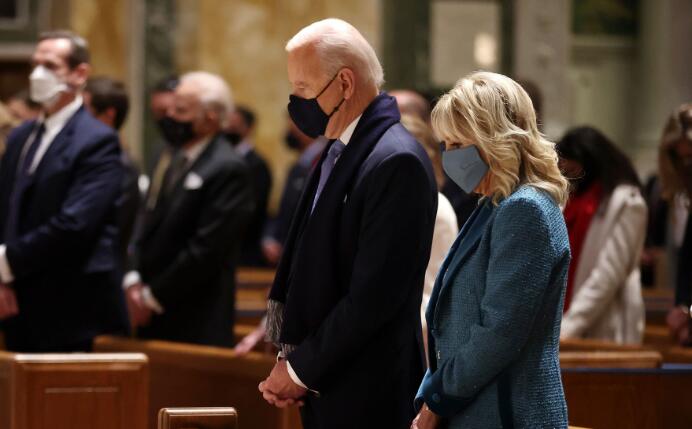 美國眾議院議長佩洛西、美國參議院民主黨領袖舒默、美國眾議院共和黨領袖麥卡錫與拜登一起參加彌撒。