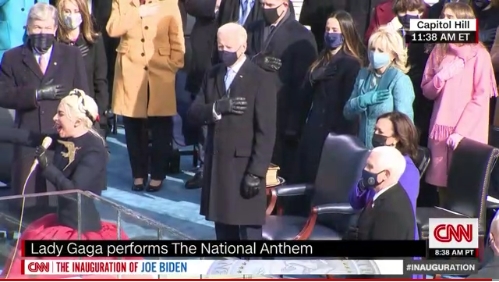 [00:35] Lady Gaga在就職典禮現場領唱美國國歌。