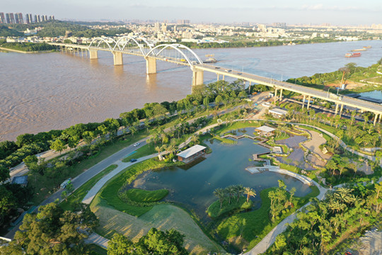 公共空間、公園綠地升級改造是江門構築城市公共服務功能與景觀特色的重要抓手。媒體團首先去往新會區北園、馬山公園和位於江門人才島的潮頭公園參觀。