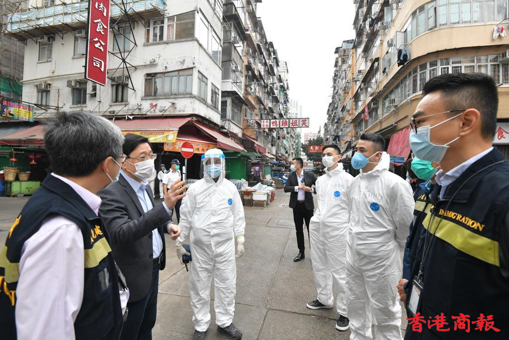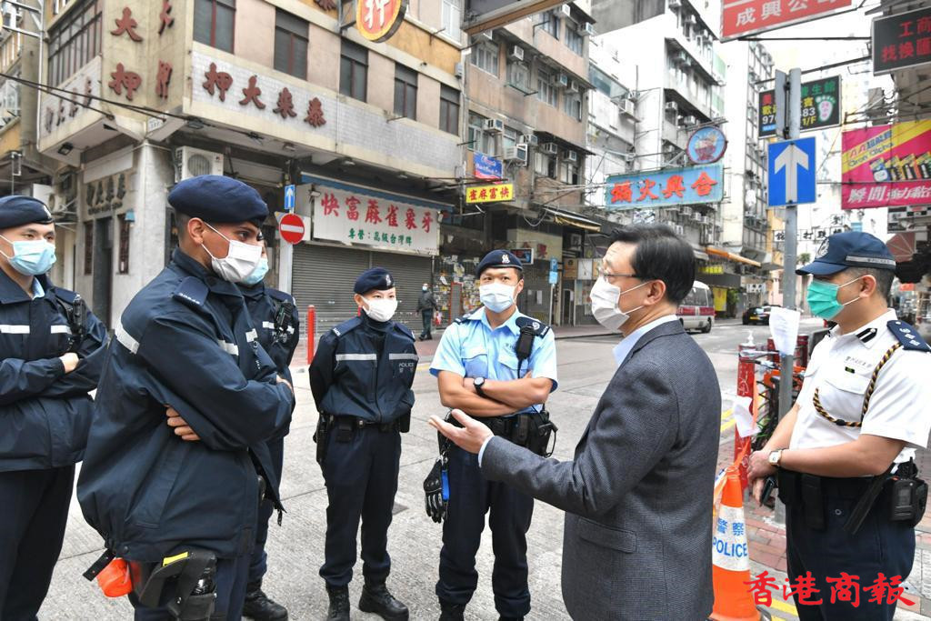 保安局局長李家超視察佐敦「受限區域」 為在場支援的紀律部隊打氣
