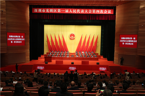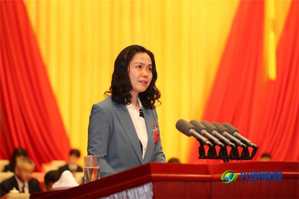 蔡穎代表光明區人民政府向大會作政府工作報告
