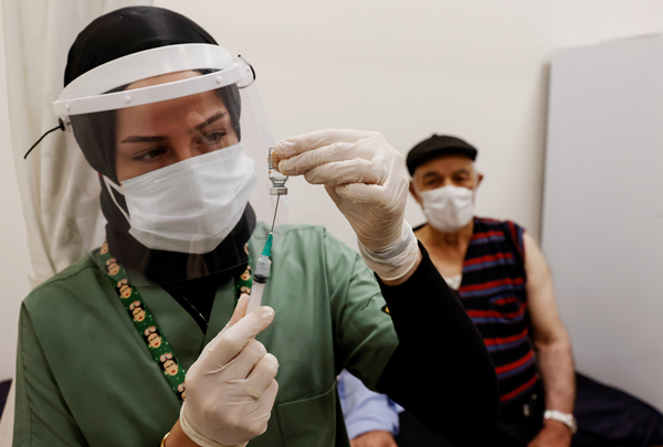 一名土耳其護士替長者注射中國科興新冠疫苗。路透社