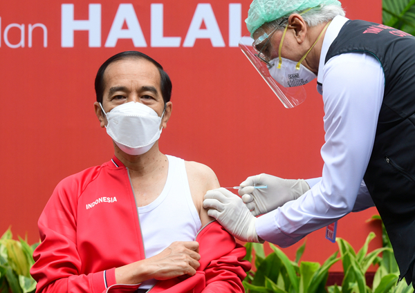 27日,印尼總統維多多已接種第二劑科興疫苗。維多多表示,接種首劑疫苗後約兩小時曾感到疼痛,預計今次也會一樣;但他對此有充分的信心,希望透過自己接種釋除公眾對疫苗的安全疑慮。