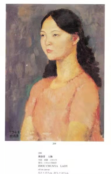 在《中國保利2005廣州冬季拍賣會》圖錄中,筆者看到了周春芽創作于1984年的一幅作品《人物》。這是一幅年輕女子的肖像,初看這幅作品與周春芽的其他作品相比,並無特別令人感到驚奇之處,甚至带有「中規中矩」的味道。但仔細品味,筆者似乎在這幅作品中看到了周春芽色彩運用的根源所在,或者說在這幅作品中,周春芽小心地把他所偏愛的色彩融入其中,構建出一種既具現實主義又具表現主義的藝術氛圍。