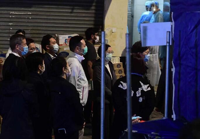 現場一位女士自稱住在A座、剛剛下班的女士表示,她中午已經做完檢測,明天中午要上班,擔心到時候出不去,所以打算去妹妹家借宿一宿。現場民政事務局的工作人員表示,如果這兩天有做檢測並登記資料,今晚就不用再做檢測。之後,該位女士登記資料後回到家中。