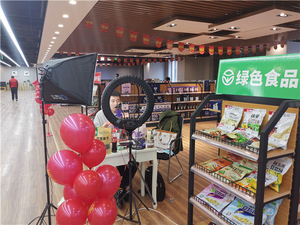據了解,綠色食品商城除現場銷售外,還設有商務洽談區,以便有效對接省內外團購、定製化採購、特渠採購等市場需求;由主播培訓教室、場景直播區、櫥窗直播區、室內直播區等組成的直播產業區,打通線上、線下的引流及多頻銷售。