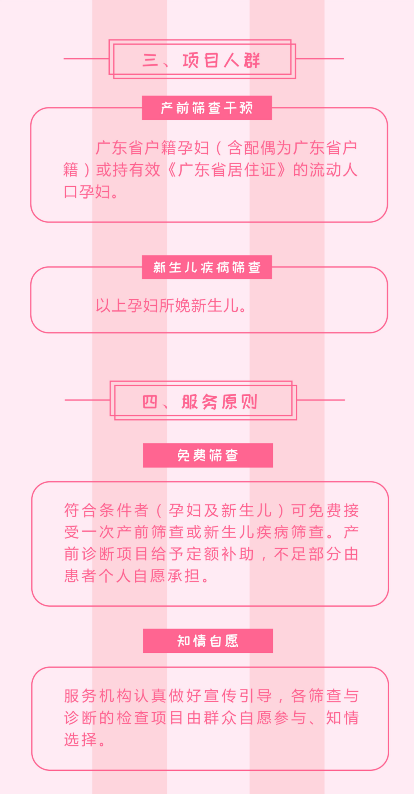 另悉,可以免費篩查的人群包括:廣東省戶籍孕婦(含配偶為廣東省戶籍)或持有效《廣東省居住證》的流動人口孕婦,以及以上孕婦所娩新生兒。出生缺陷綜合防控項目實行屬地管理,由定點服務機構完成。(記者李苑立 通訊員粵衛信)