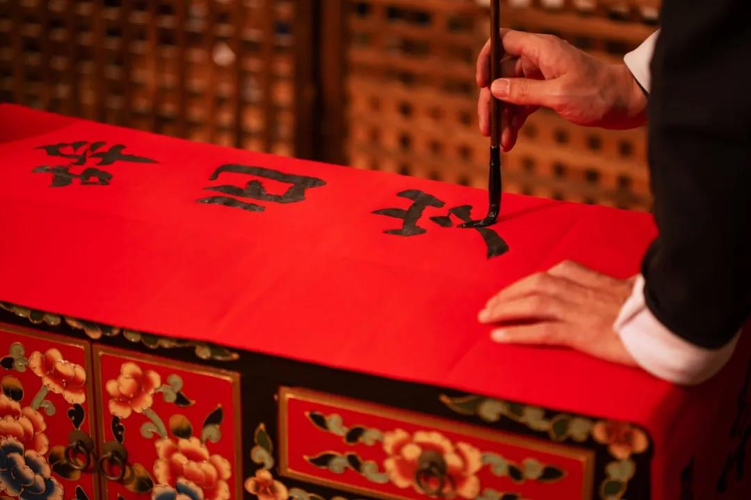 有些地方小年就開始貼春聯了,很多人還是喜歡用傳統春聯。普通的紅紙配上黑色的書法,簡樸卻年味兒十足。