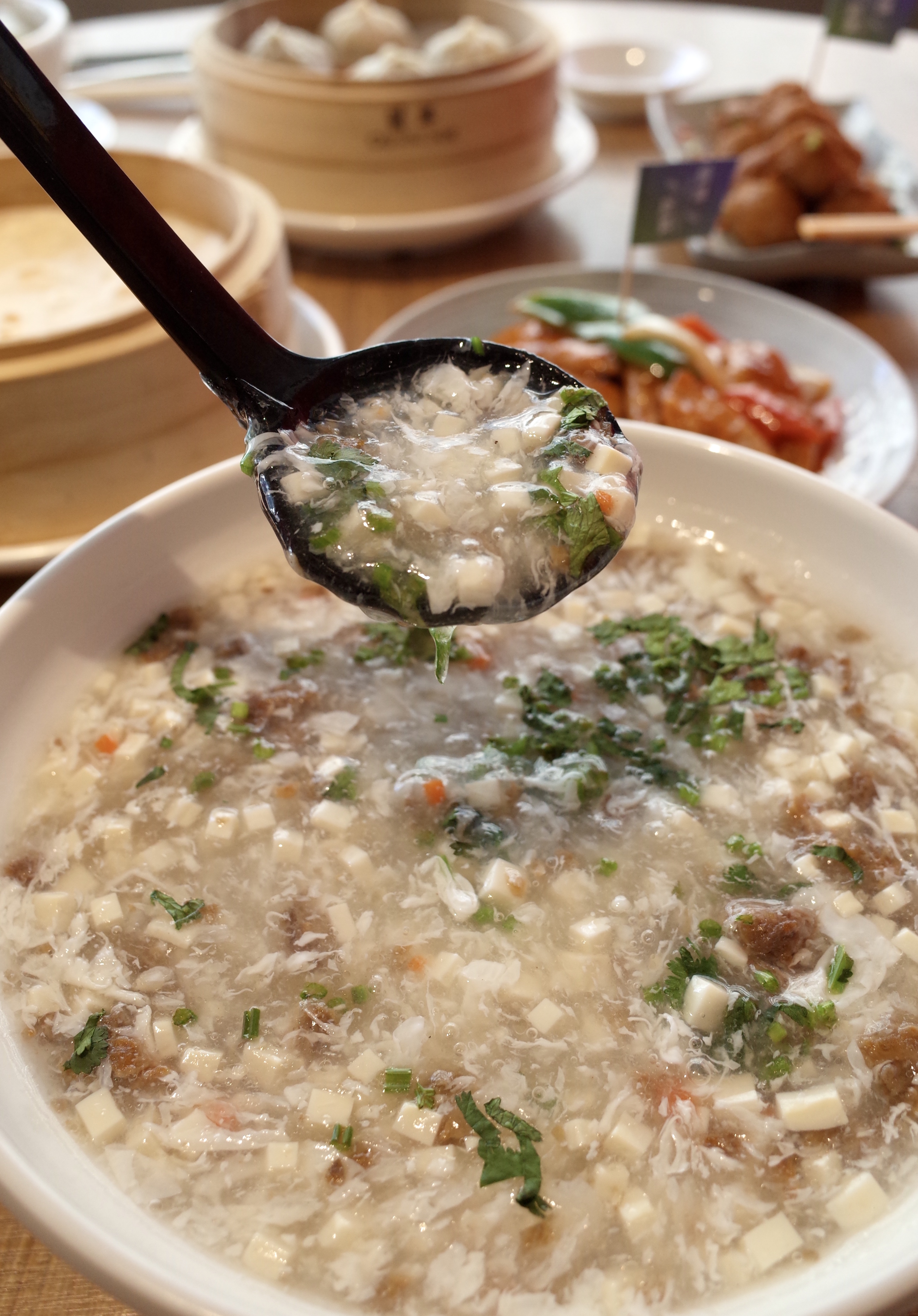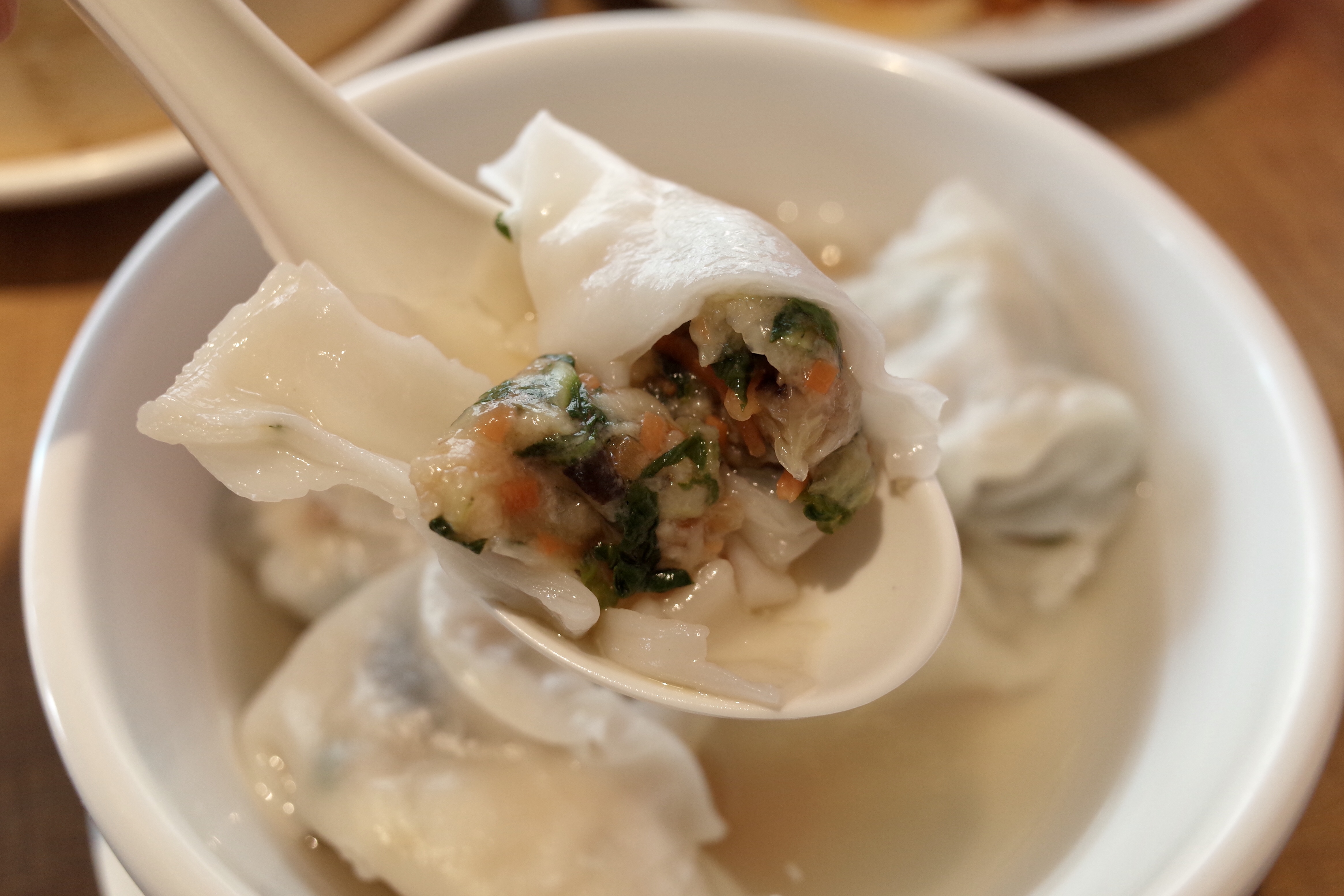 菜肉雲吞湯重塑成「善玉雲吞湯」,以新豬肉入饌後混以甘筍粒、冬菇、奶白菜,能吃到蔬菜的清爽脆口。