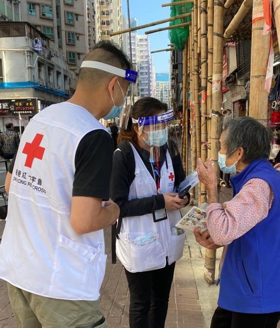 香港紅十字會指,本港多個地區在新冠肺炎疫情持續下於限定時段被劃為指定區域或受限區域,它們則在1月24、25、31日至2月4日派出職員及義工到佐敦、紅磡、深水埗及油麻地區,為有需要人士提供精神健康及防疫資訊,派發抗疫用品,並有約5000人次受惠服務,人員還與逾800名市民傾談,以了解他們在新冠肺炎疫情中的不同需要。