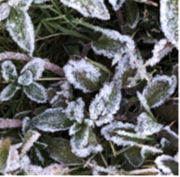 霜形成的條件:晴朗微風濕度大的夜間,地面溫度在0℃以下。