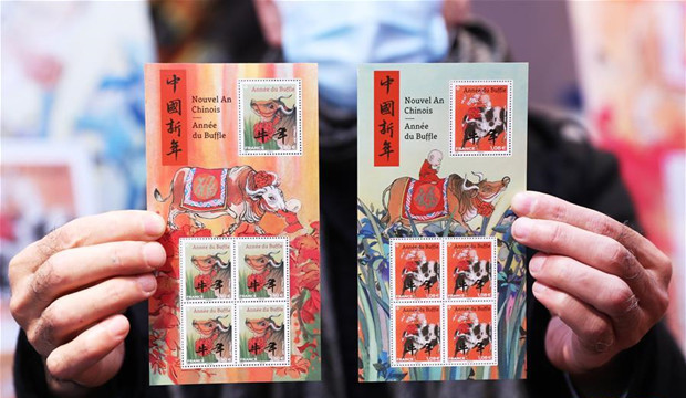 據中新社報道,法國郵政當地時間6日在巴黎舉行牛年生肖郵票發行儀式,迎接中國農曆新年的到來。