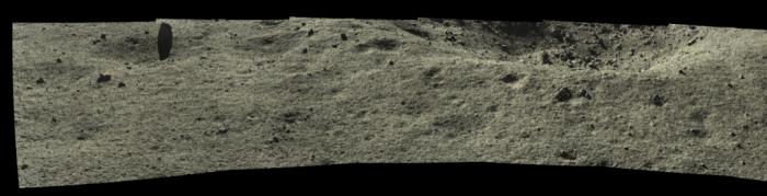 (1)全景相機擇機對石塊和撞擊坑進行彩色圖像。