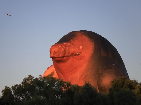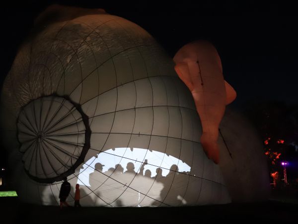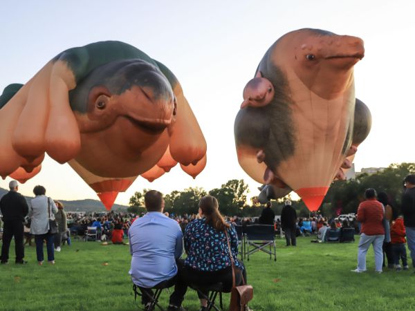 澳洲國家美術館周日在堪培拉舉行了名為「天鯨爸爸」和「天鯨」的兩個熱氣球的藝術展。當地民眾在黎明前就前往觀看熱氣球的點火及升空。美術館介紹,「天鯨爸爸」是澳藝術家皮奇尼尼設計的該系列熱氣球的新造型,約有7層樓高,當天是其首次正式亮相。「天鯨」是該藝術家在2013年為堪培拉迎建城100周年設計的。(圖片來源:新華社)