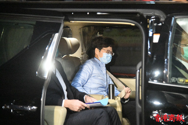 晚上10時左右,特首林鄭月娥到佐敦文英樓封鎖區巡視。文英樓居民分批接受現場檢測。
