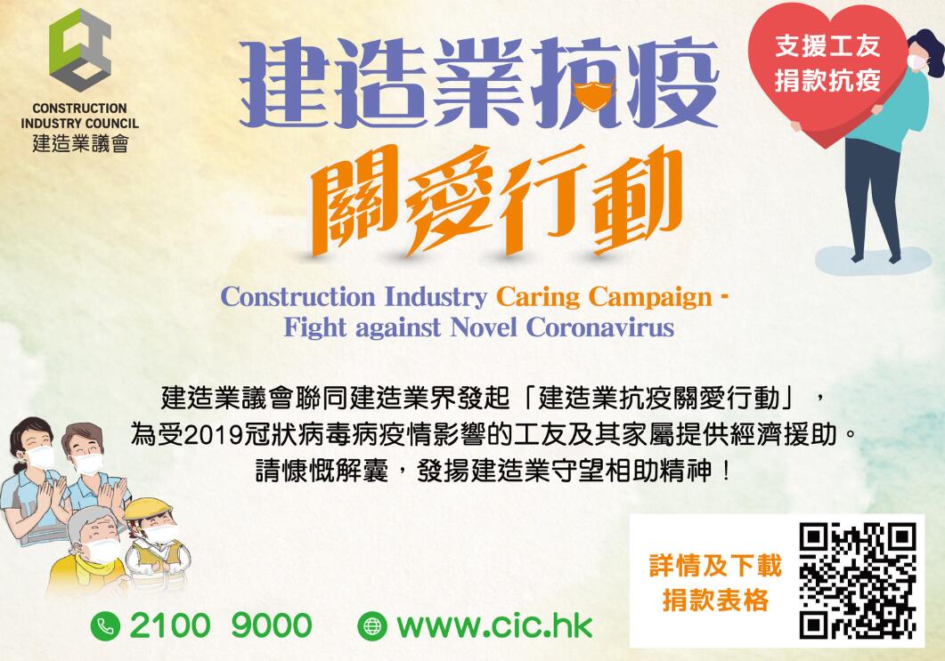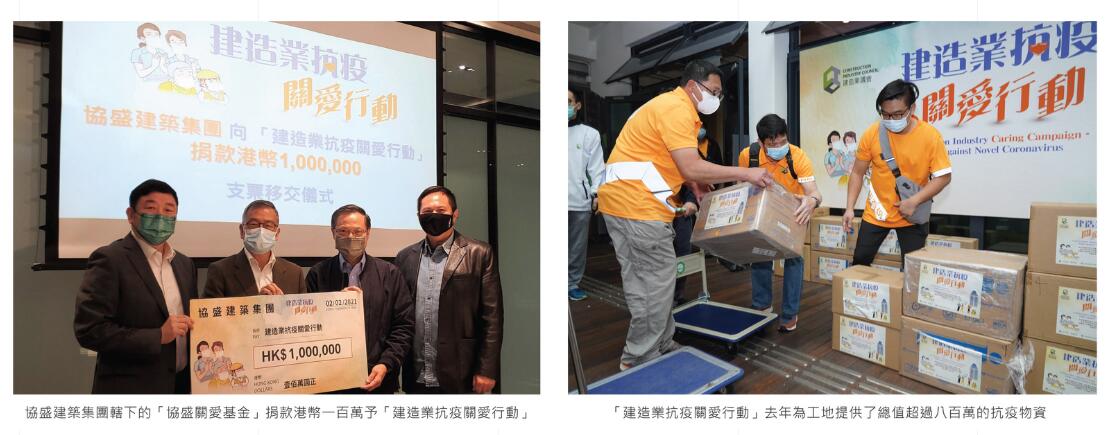 陳家駒其後提到自入冬後的第四波新冠肺炎疫情起有多位建築工人染病,而建造業議會去年與建造業界成立的「建造業抗疫關愛行動」於4日已為3162位需要隔離和268名確診感染的工人提供經濟援助,行動還為工地提供逾800萬元抗疫物資,令善款餘額已跌至不足100萬元;幸好上星期有建築集團轄下的「協盛關愛基金」及有建築公司各捐款港幣100萬元,為關愛行動送上及時雨,令受新冠肺炎疫情影響的工友可以安心過年。