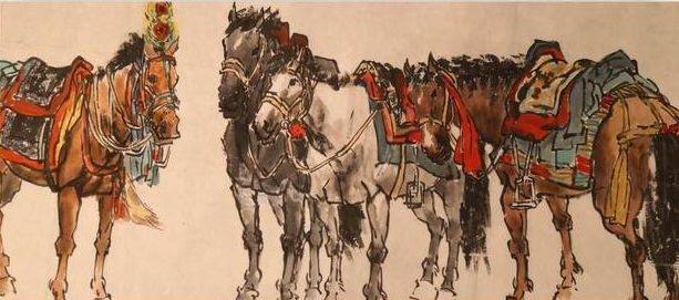 陳石的馬,是新時代新時期的馬。沒有韓干《照夜白》那份驚恐,沒有趙孟頫《調良圖》那份無奈,不像郎世寧《八駿圖》那樣華貴,也不像徐悲鴻《八駿圖》那樣瘦骨嶙峋,陳石畫的絕大多數馬,沒有韁繩籠絡束縛,沒有牧人騎手駕馭,自由、奔放、雄健、大氣,恰似揚州八怪之一金農心中憧憬的「昔年曾躡五雲端,不與人騎更好看」那樣一種境界。他畫馬是為了抒寫胸中奔騰的豪氣,他畫山是為了展現心中聳動的高原,他畫雲是為了寄託自己超然的情懷。