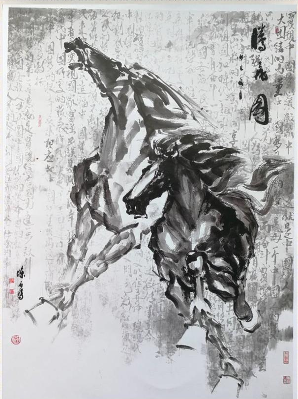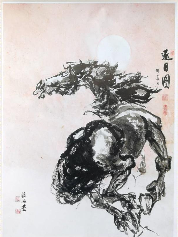 如果說詩人是以文字表達心聲情懷,那麼陳石則以筆墨表達著自己對書畫的鍾情。他喜歡觀察生活,觀察自然,喜歡馬,喜歡研究馬的習性與形態。他畫馬,以書入畫,以線取型,力求在快意酣暢的書寫中完成形象塑造;然後施之以重墨淡彩,顯示出不凡的格調和品位。擅畫馬,成為陳石繪畫的標誌,為他奠定了在國畫領域的特殊一隅。
