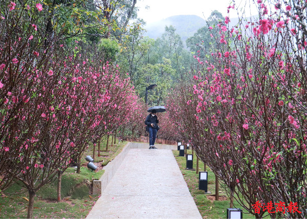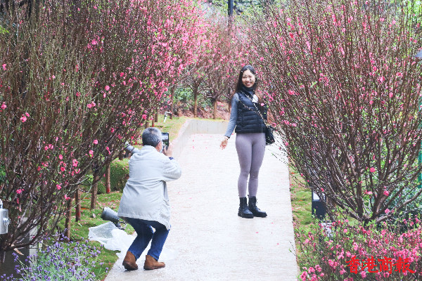 俗語有雲:借花敬佛,新年「慈山寺」就栽植了500株桃花,以佛前供花之功德迴向大眾,為香港祈福。寺內桃花盛放迎接新春,多得本地花農的悉心打理,於半年前在寺內的「正念之路」栽植桃花樹苗,並一直延伸至寺內觀音像背後,塑造出唐代白居易筆下「人間四月芳菲盡,山寺桃花始盛開」的詩意,桃花芬芳彌漫山寺,以心花供佛,傳播祝福。 (馮瀚文 攝)