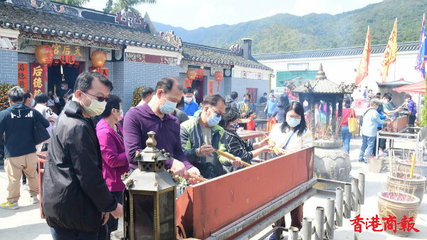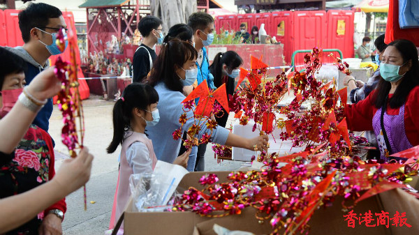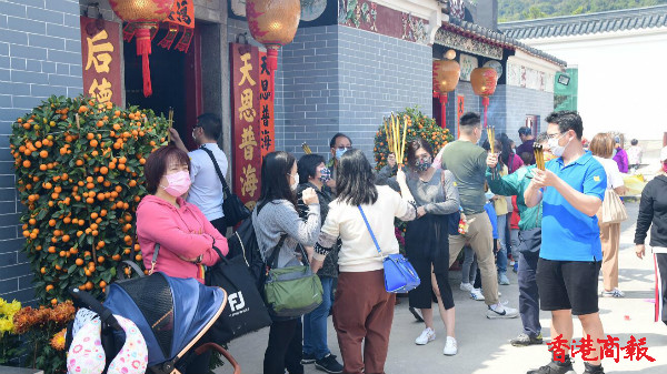 不少市民一家大小前來古廟,祈求新一年可以轉運,尤其疫情可盡快受控及結束,希望生活及本港經濟可回復正常。(攝影 崔俊良)