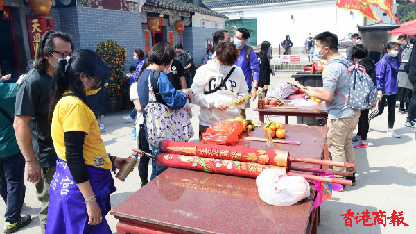 今天是大年初三,俗稱「赤口」,傳統要避免拜年免有爭拗,大批市民今早湧至大埔林村行大運。即使今年林村許願樹因疫情下被圍封,禁止市民掟寶牒,仍吸引到大批市民轉到林村內的天后古廟祈福。