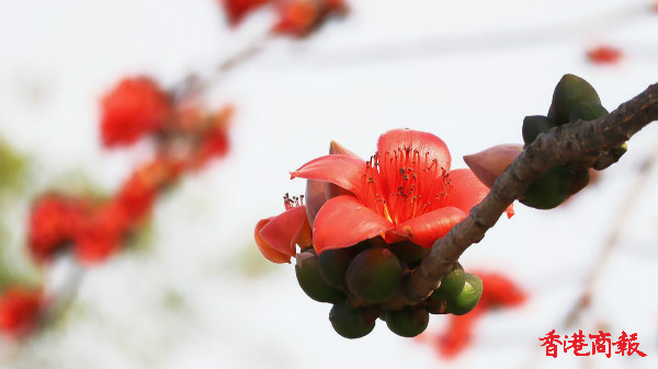 在香港,路旁、公園及郊外皆可見到紅棉樹蹤影,例如:石崗軍營、香港公園、錦上路等。木棉花的花語是:珍惜身邊的人,珍惜眼前的幸福;木棉花代表生氣、希望和將來。看着漂亮的花卉,無疑能使人紓緩整天憂慮疫情的緊張感、化解長期戴著口罩的悶氣,帶來好心情。(攝影 馮瀚文)