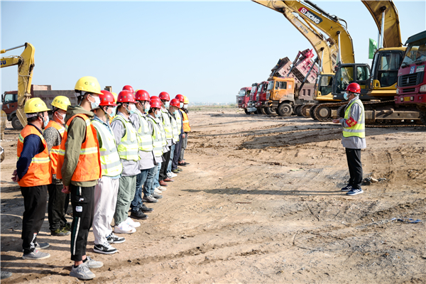 結束春節假期的首批工人們戴著口罩和安全帽,紛紛忙碌在工作崗位上,以飽滿熱情投入到新一年的工作中。