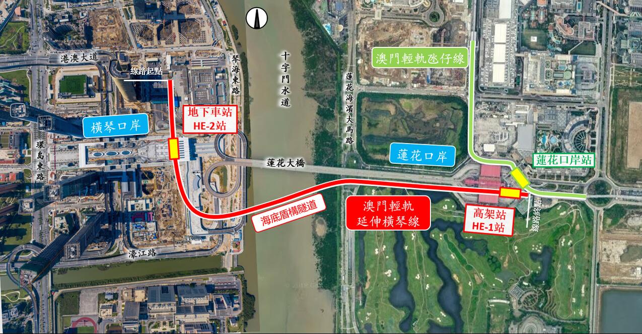 據悉,整項工程全長約2.2公里,包括由澳門蓮花大橋旁的1個輕軌站,用高架橋,經約900米的海底隧道穿過十字門水道,進入到珠海橫琴口岸的輕軌站。