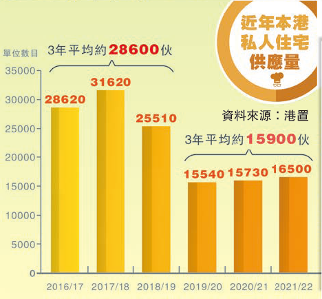 ○私人住宅:預計2021年起計的5年內,每年平均落成量超過1.8萬個單位。