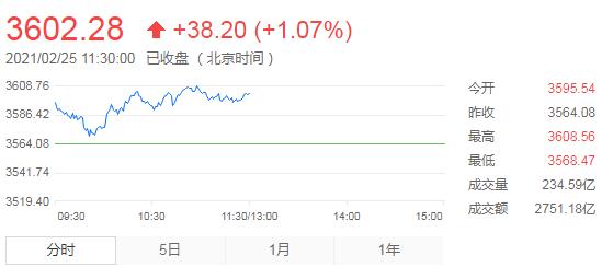 2月25日,星期四,農曆正月十四。外圍市場走暖,隔夜美股收盤全線上漲,道琼斯指數再創歷史新高,原因是美聯儲主席鮑威爾重申維持超低利率,並繼續執行資產購買政策,市場有關通脹和美債的擔憂有所緩解。今日,A股三大指數全線高開,不過,隨後出現短時調整,上證指數最低探低到3568點,之後開始回漲。創業板和深成指走勢類似,但相比上證指數走勢稍弱。