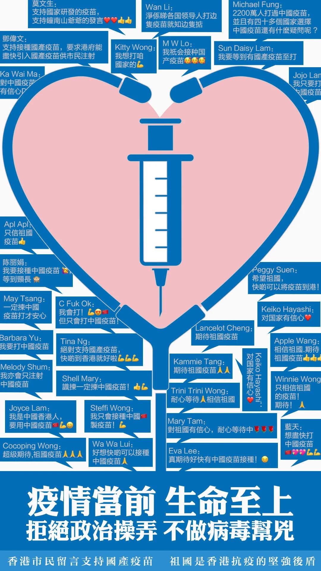 有媒體曾發文呼籲,全世界仍有許多國家,無法取得接種疫苗,仍要活在新冠的陰霾,讓病毒操控生死,扼死經濟復蘇。「香港人,要惜福,把握自己難得機遇,接種疫苗,走出新冠陰霾。」(編輯:桐曲 來源:人民日報、上觀新聞、文匯報等)
