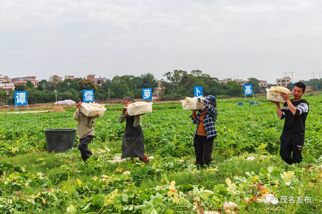 電白區沙瑯鎮譚儒村地處沙瑯江與黃嶺河相交的衝擊平原,土質半泥半沙,疏鬆肥沃,種蘿蔔一直是當地的傳統。如今,憑着這一顆蘿蔔,不僅富了村民的口袋,還打通了蘿蔔產業的鏈條。