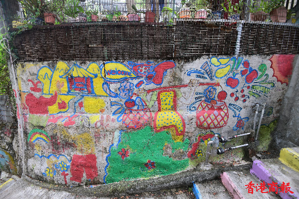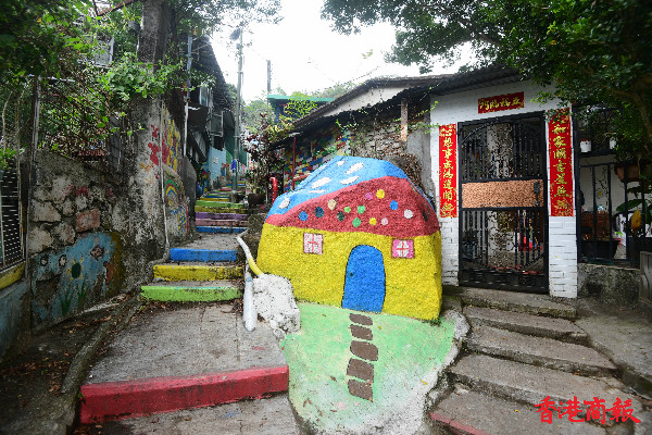 光板田村內現住有不少村民,經村民及藝術家合力活化這條村,在牆上劃上色彩繽紛的壁畫,當中連光板田村的特產大樹菠蘿,也化作壁畫圖案,村口地上更劃有兩隻可愛小豬歡迎村民回家一樣;走過村落的第一段,更有彩虹樓梯及彩虹磚牆。假日時更吸引不少人慕名而來,一睹壁畫村的特色,可感受到光板田村村民的齊心及溫暖,除種植多棵大樹菠蘿外,難得在鬧市中可找到一條隱世藝術村莊。(崔俊良 攝)