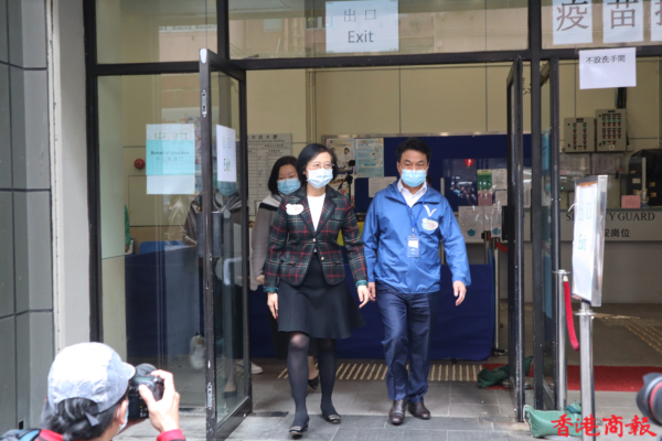 負責統籌疫苗計劃的食衛局局長陳肇始和公務員事務局局長聶德權,今天第一站的巡視地點就是銅鑼灣接種中心。