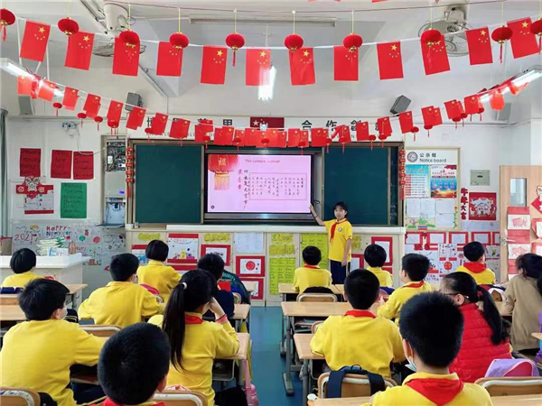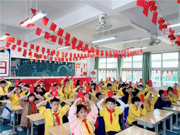 2月26日,農曆辛丑牛年正月十五。賞花燈,猜燈謎,舞獅子,吃元宵,鬧元宵,熱鬧喜慶的元宵節自古以來便是孩子們最期待與喜愛的節日之一。上午9點,深圳市羅湖區港人子弟學校大隊部辦公室門口排起了長龍,學生們人手一份字謎,有的在思索自己猜出來的謎底對不對,有的三三兩兩地在討論著誰的謎語更有意思,有的猜對了謎底拿到了禮物滿臉都洋溢著喜悅……這是學校大隊部組織的元宵節慶祝活動之一,這些謎語正是學校為每位同學準備的元宵文化禮物。