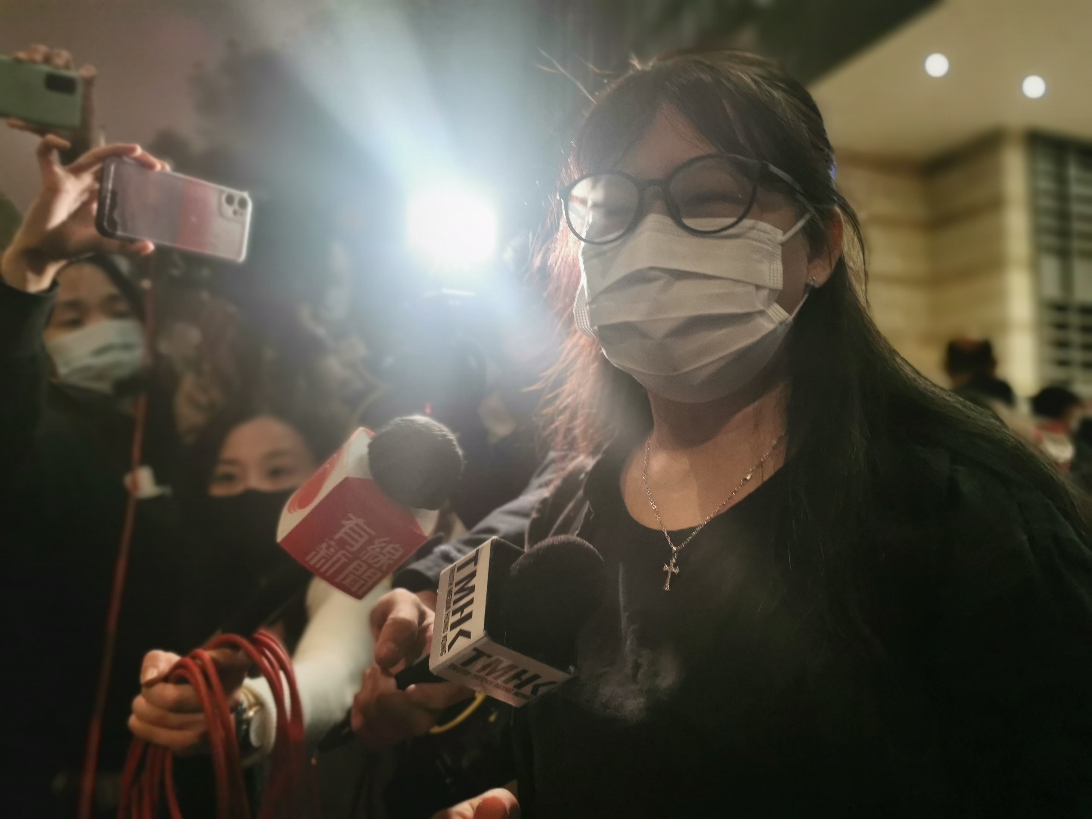 來接他的養母,昨天在得悉他不能保釋的時候,情緒十分激動,甚至在法院門口崩潰哭倒在地上,大喊「香港法治已死」,今天養子獲釋,她立即轉口風說,感谢這一次政府釋放的善意,最終希望可以撤銷控罪。